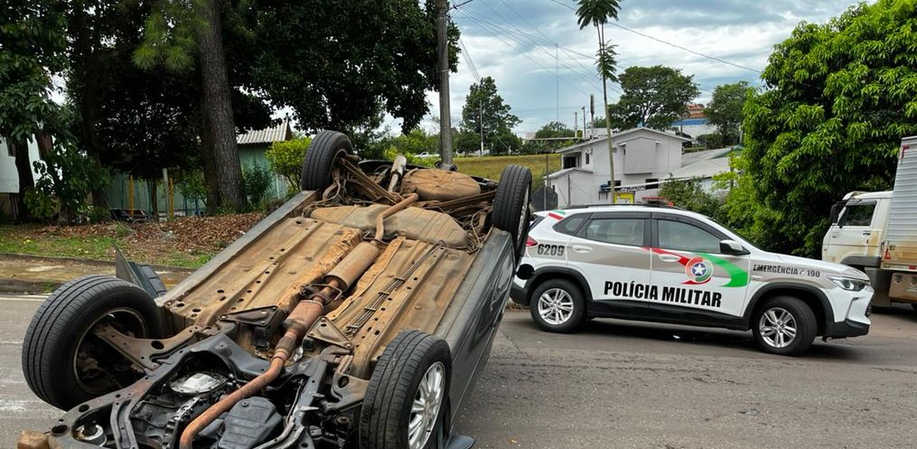 Um capotamento foi registrado na tarde desta segunda-feira, 22, por volta das 15h, na Rua Marcílio Dias, bairro São Luiz, em São Miguel do Oeste.