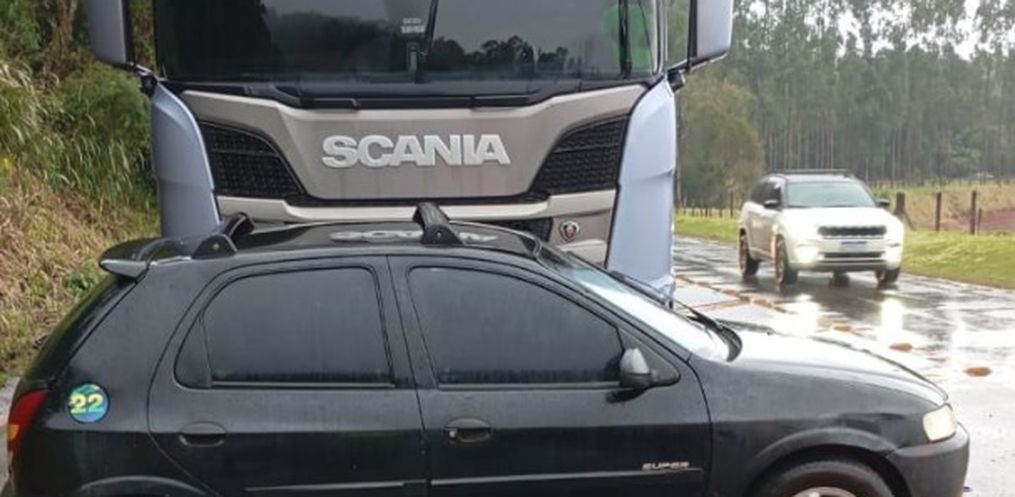 A Polícia Militar Rodoviária atendeu na manhã desta quinta-feira, 11, um acidente de trânsito na SC-157, em São Lourenço do Oeste, envolvendo um Celta, emplacado em Novo Horizonte e um caminhão Scania/R450 A6X2 que tracionava SR/Randon emplacados em Cascavel/PR.