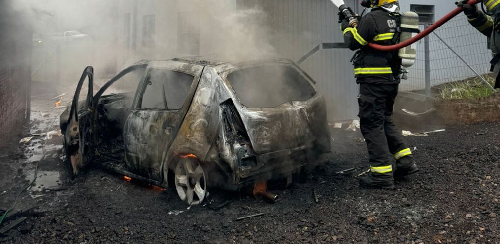 Um incêndio na tarde deste sábado, 6, consumiu um veículo Renault/Sandero na linha Tigre, interior de Mondaí. As chamas ameaçaram se espalhar para uma residência e um galpão próximos.
