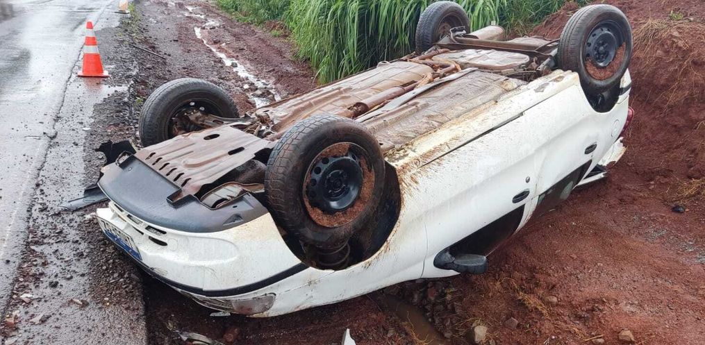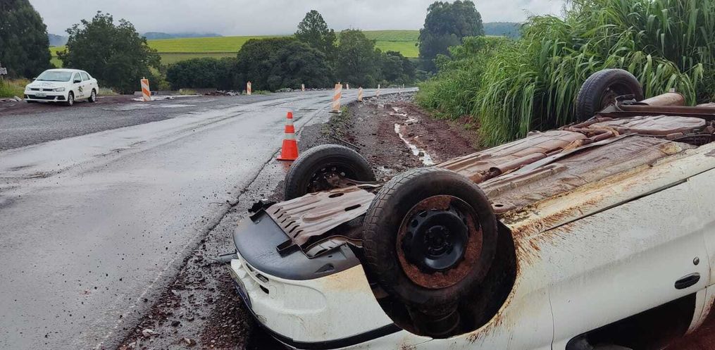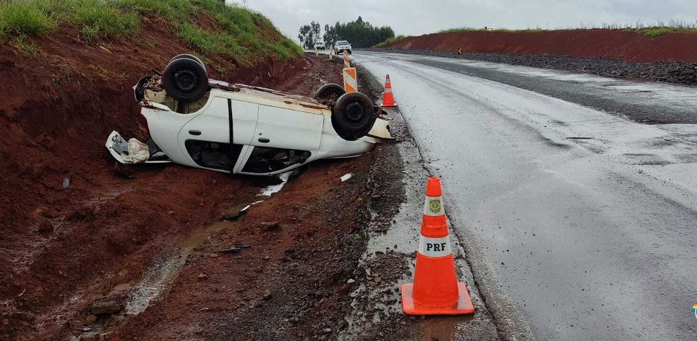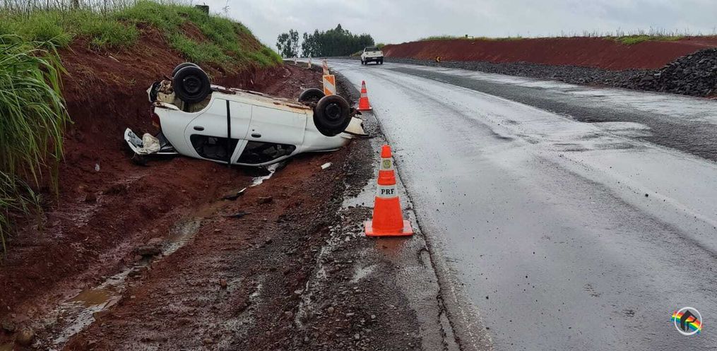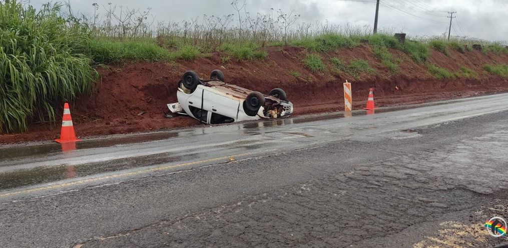 Um veículo Palio foi encontrado com as rodas para cima às margens da BR-163, em Guarujá do Sul, nas proximidades do antigo laticínio Guarujá. Segundo informações, o acidente ocorreu na noite deste domingo, 1º.