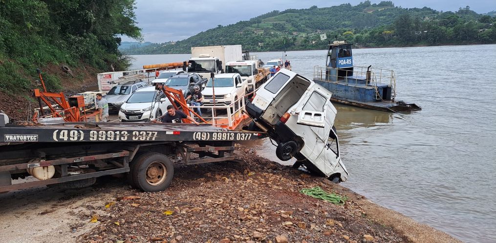 Por volta das 18h15 a travessia da balsa sobre o Rio Uruguai foi retomada em Itapiranga. Os balseiros retiraram o carro para a margem, para possibilitar a travessia após o acidente da tarde desta quinta-feira, 24.