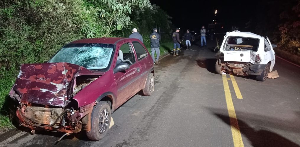 Corpo de Bombeiros de Campo Erê foi acionado na noite desta sexta-feira, 03, por volta das 19h30 para atender a ocorrência na PR-180, saída para Marmeleiro. Se envolveram na batida um Gol, placas de Chopinzinho, e um Corsa Wind, emplacado em Campo Erê.