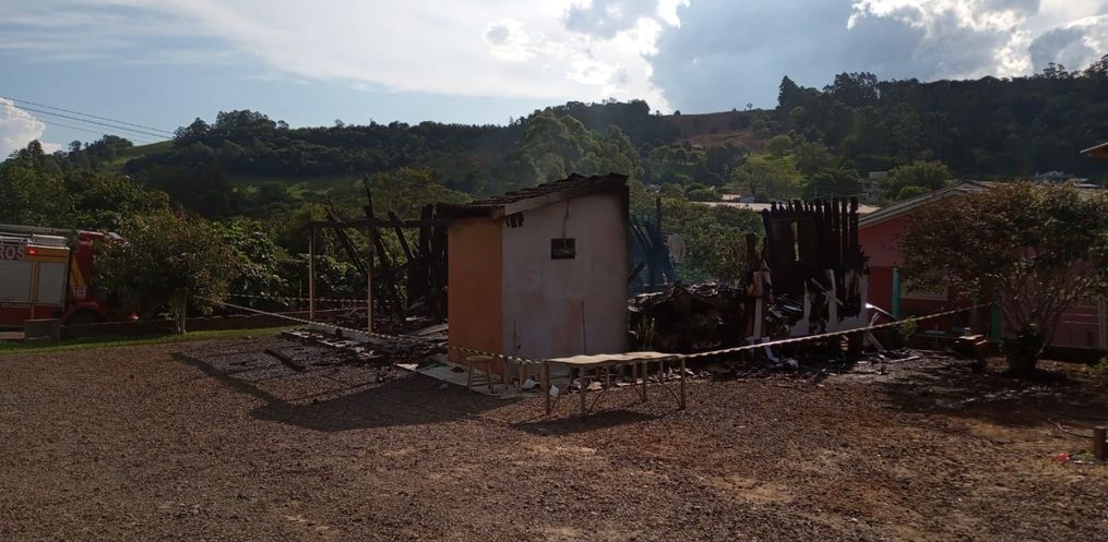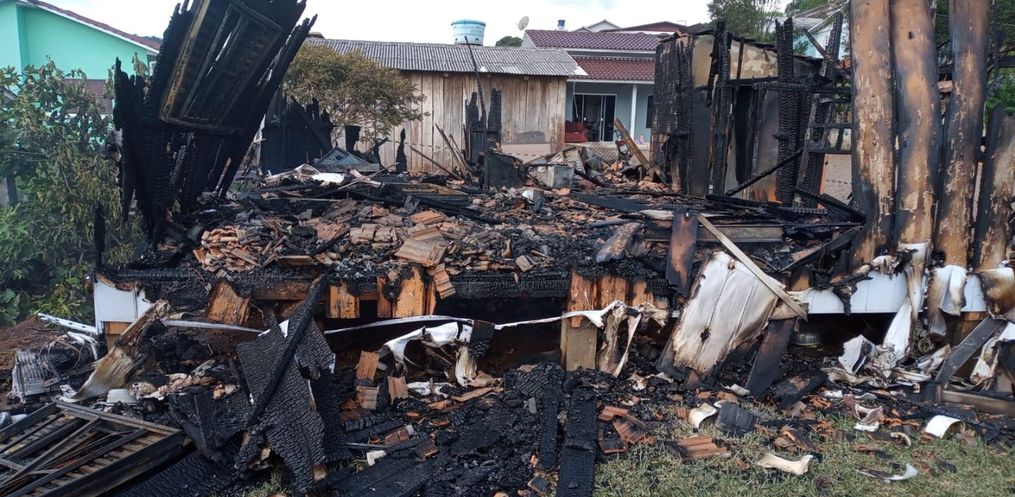 Uma residência de madeira ficou completamente destruída em um incêndio na tarde de quinta-feira, 10, no município de Anchieta.