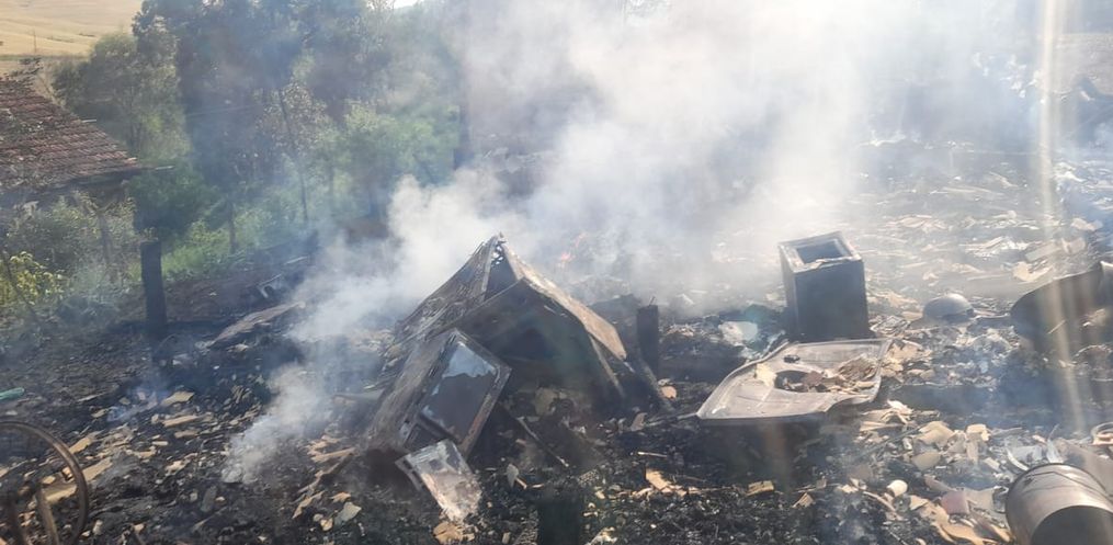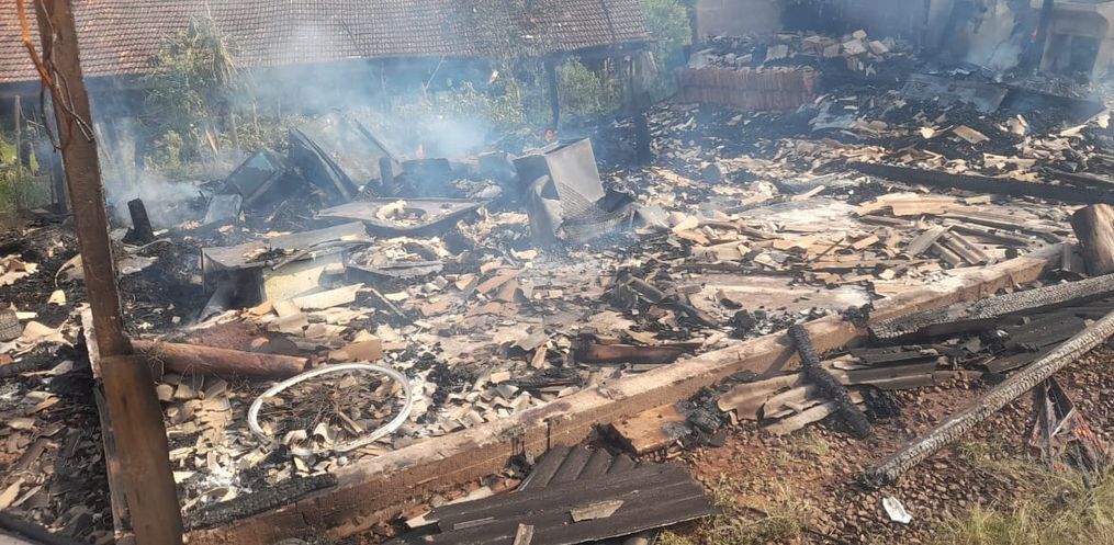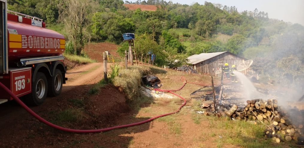 Os Bombeiros foram acionados, por volta das 14h20, para uma ocorrência de incêndio em edificação unifamiliar na Linha Trevisan em São José do Cedro. Quando a equipe chegou ao local, conformou a natureza da ocorrência, sendo que o incêndio já havia tomado conta por completo da residência.
