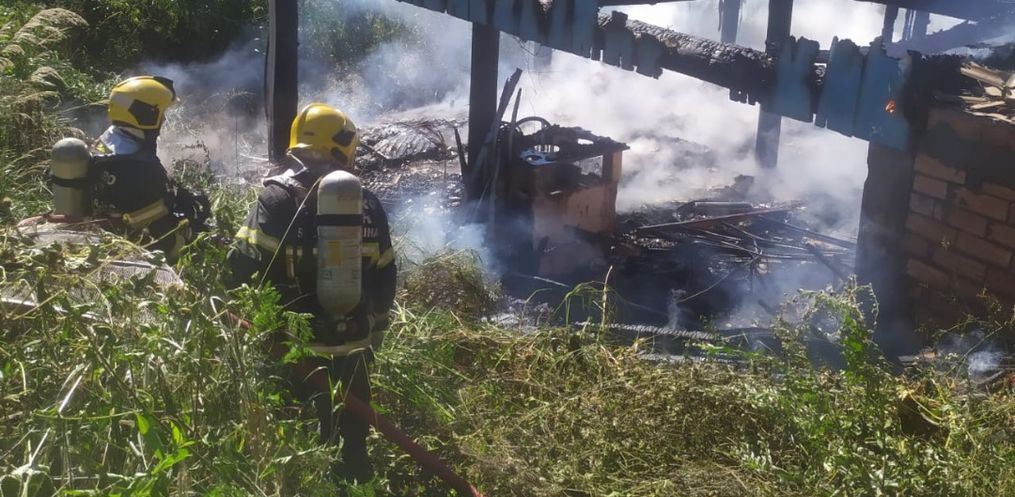 Um incêndio atingiu uma residência na manhã desta sexta-feira, 21, na Linha Santana de Bela Vista, no interior de São Lourenço do Oeste, por volta das 8h45.