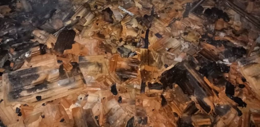 O teto em quase sua totalidade havia desabado, restando telhas em poucas partes da residência, constatado também que uma lateral da edificação estava comprometida, com risco de queda eminente. Não houveram vítimas ou feridos envolvidos no incêndio, e conforme relatos da proprietária a edificação possuía seguro.