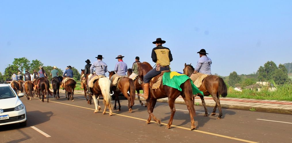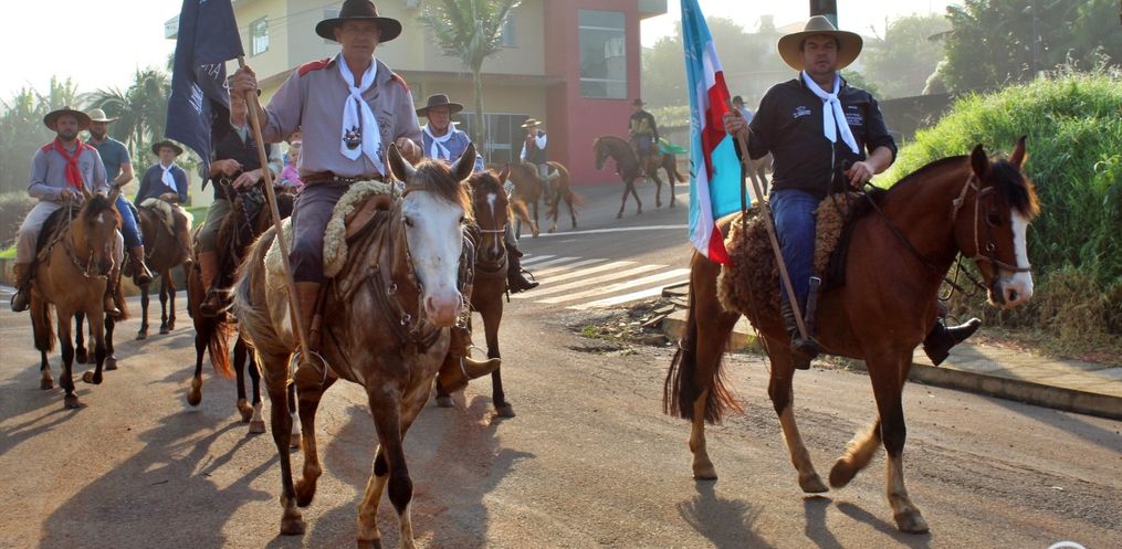 O Dia do Gaúcho, comemorado nesta quarta-feira, 20, foi marcado pelo acendimento da chama crioula e cavalgada pelas ruas da cidade, em Iporã do Oeste. A programação especial do CTG Herança Pampiana, alusiva à Semana Farroupilha, iniciou na noite desta terça-feira, 19, em parceria com o Clube do Cavalo Alma Campeira e o Piquete de Laçadores Esquina Gaúcha.