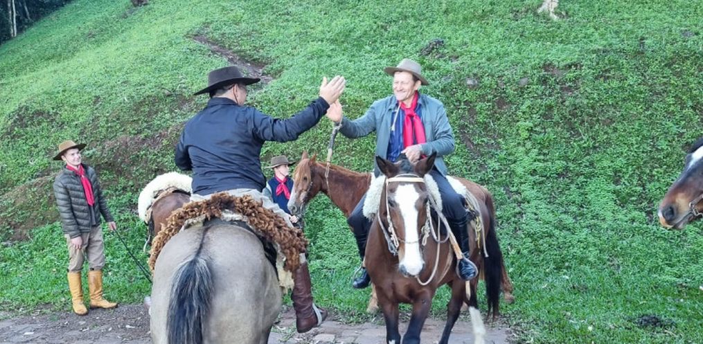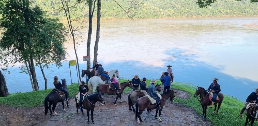 Conforme o coordenador da cavalgada, Édison Bieger, são dois dias de percurso, que iniciou neste sábado, 16, no Marco Três Fronteiras, na área de Lazer em linha Aparecida, interior de Itapiranga.