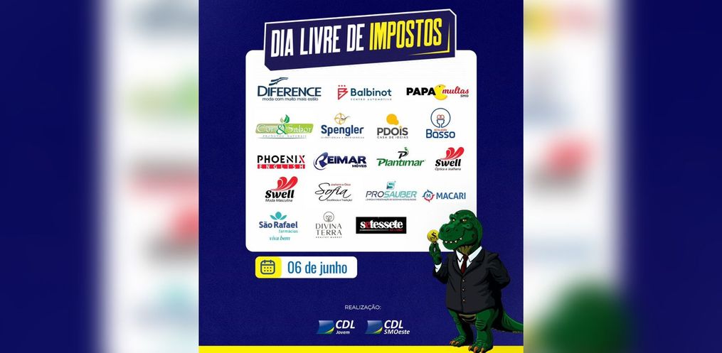 A CDL Jovem de São Miguel do Oeste promove, no próximo dia 6 de junho, o Dia Livre de Impostos (DLI), um evento anual que ocorre em todo o Brasil através do movimento lojista. A iniciativa visa conscientizar a população sobre a alta carga tributária no país e seus impactos no consumo e na economia.