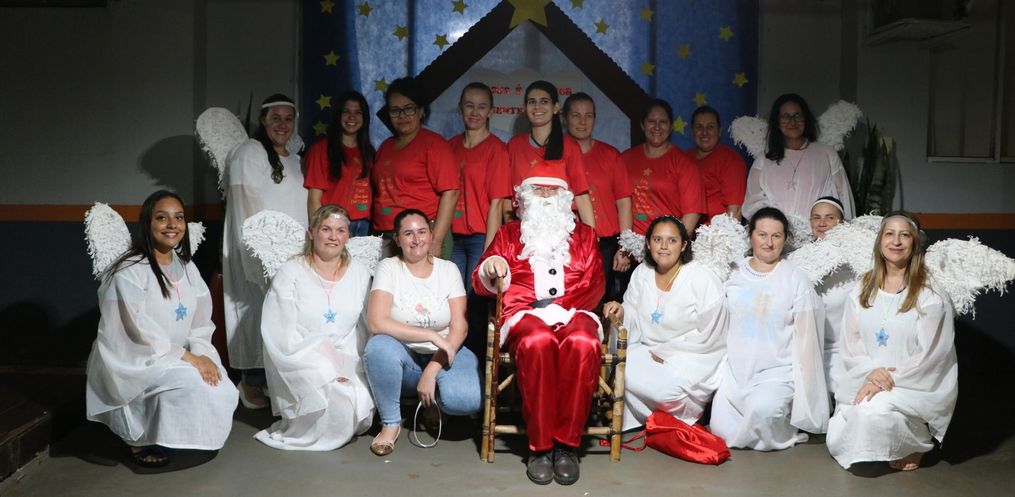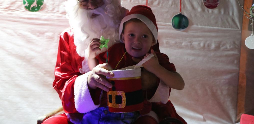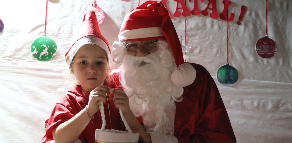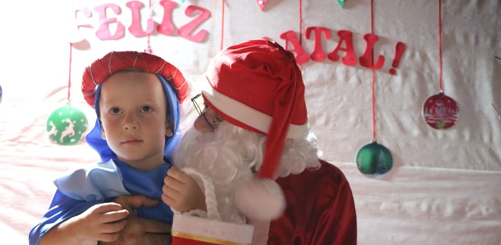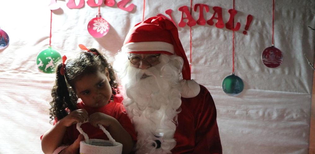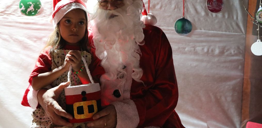 Após as apresentações, a programação foi encerrada com a chegada do Papai Noel, que trouxe consigo várias cestas de doces para distribuir entre as 76 crianças matriculadas e também para as demais que estavam presentes.