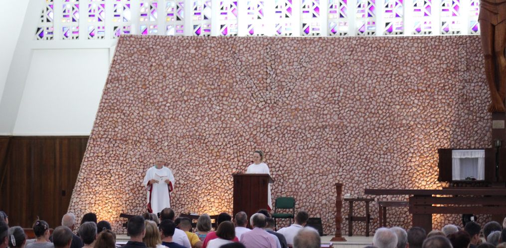 Em uma tarde de tempo instável, os fiéis lotaram a Igreja Matriz em São Miguel do Oeste, nesta sexta-feira santa, 29.