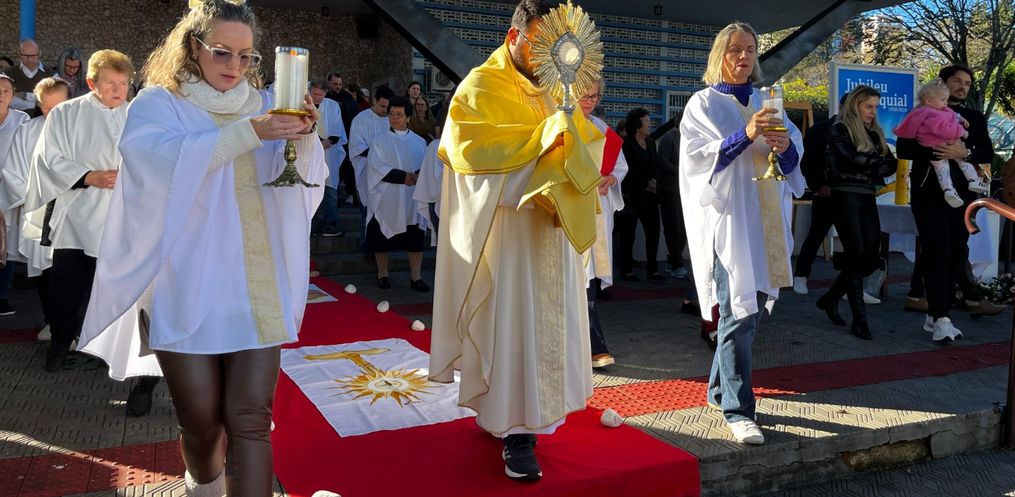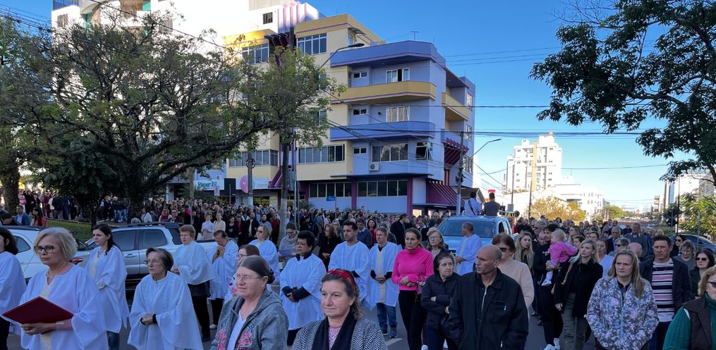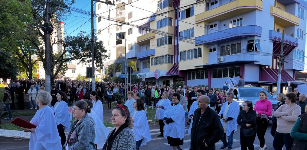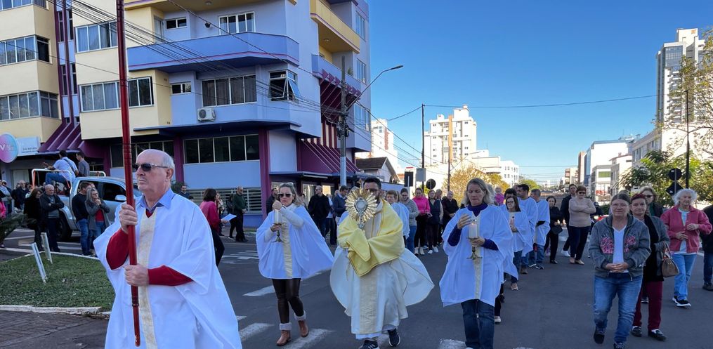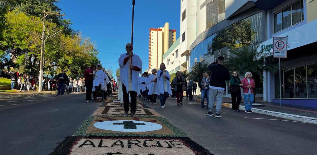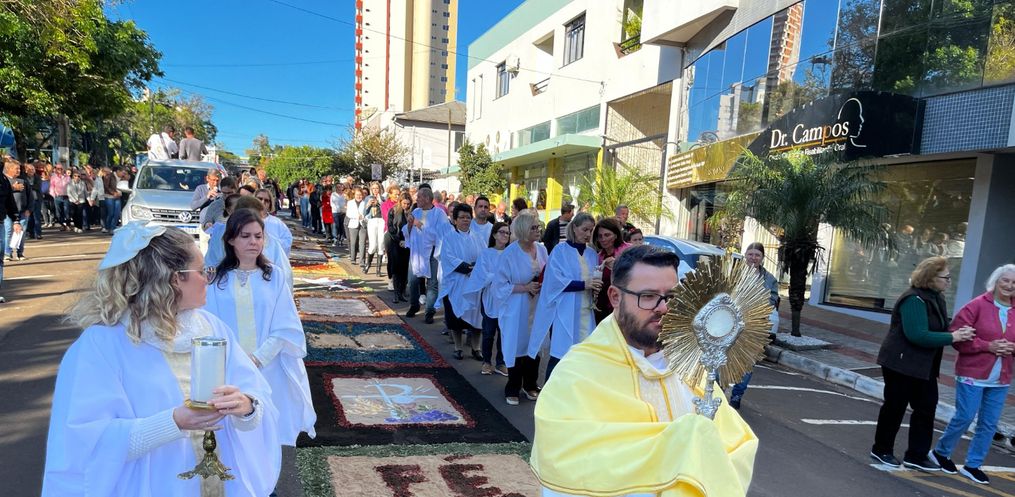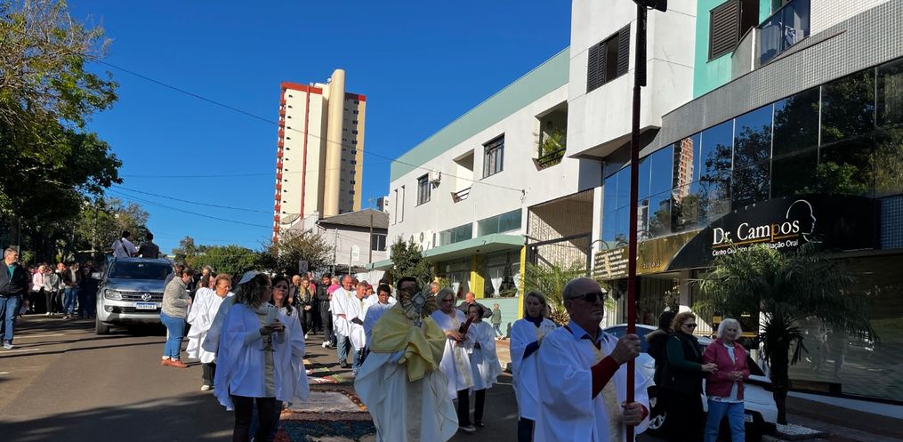 De acordo com o padre, Edivandro Luiz Frare, a procissão iniciou em frente a igreja, seguindo até a Rua XV de Novembro. Depois, seguiu até a Rua Barão do Rio Branco até a Rua Duque de Caxias, retornando para a Igreja Matriz. Durante a caminhada, foram realizadas três paradas com reflexões sobre o Corpo de Cristo.