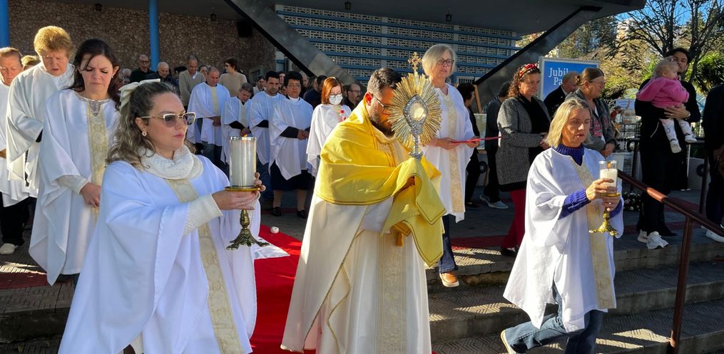 A Igreja Matriz São Miguel Arcanjo realizou, na tarde dessa quinta-feira, 30, a tradicional celebração de Corpus Christi. A missa iniciou por volta das 14h30, seguindo com a procissão por algumas ruas da cidade.