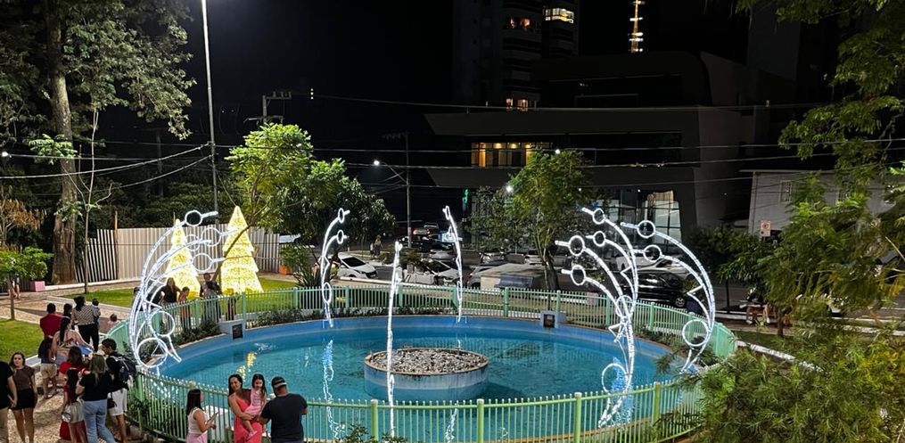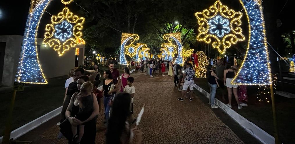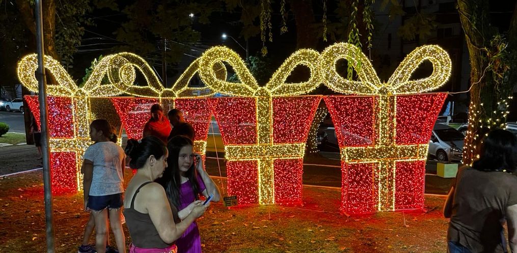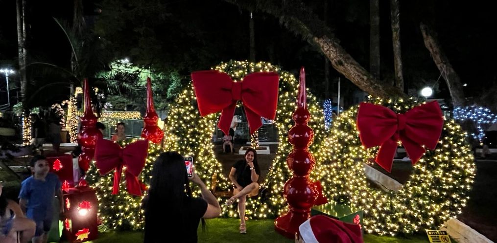 Com a iluminação acionada logo após a cerimônia, o espaço ganhou destaque pelas cores e pelo conjunto de enfeites instalados para este ano. Moradores e visitantes aproveitaram para registrar o momento.