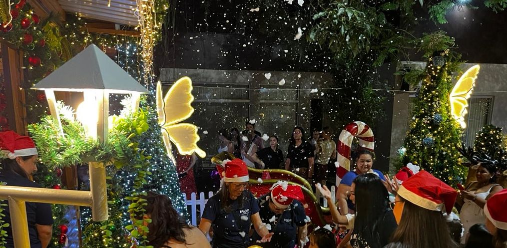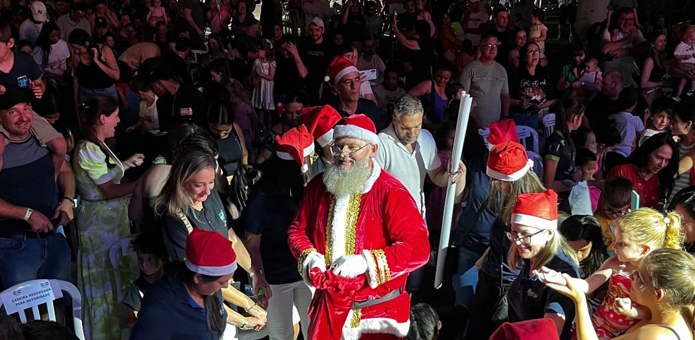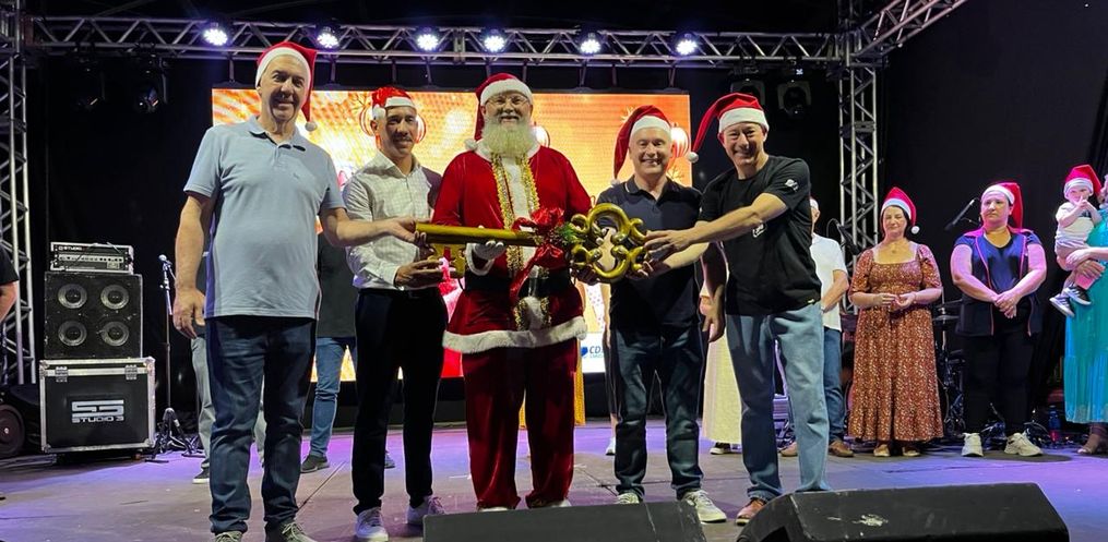 Desde as 18h, o público ocupou a praça para acompanhar as atrações gratuitas voltadas às crianças, como brinquedos infláveis, algodão-doce e pipoca. O ponto alto da noite ocorreu às 19h, quando o Papai Noel apareceu e recebeu simbolicamente as chaves da cidade, gesto que marcou o começo oficial das celebrações.