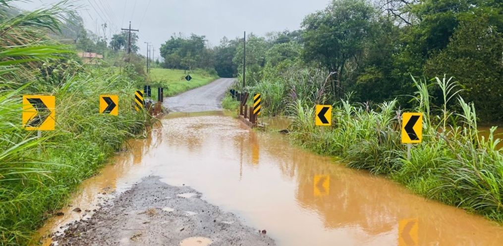 Com a cheia do Rio Uruguai, a passagem em algumas pontes no interior de Itapiranga são interrompidas. Na Estrada Beira, a SC 283 de Itapiranga a Mondaí, o trânsito foi afetado.
