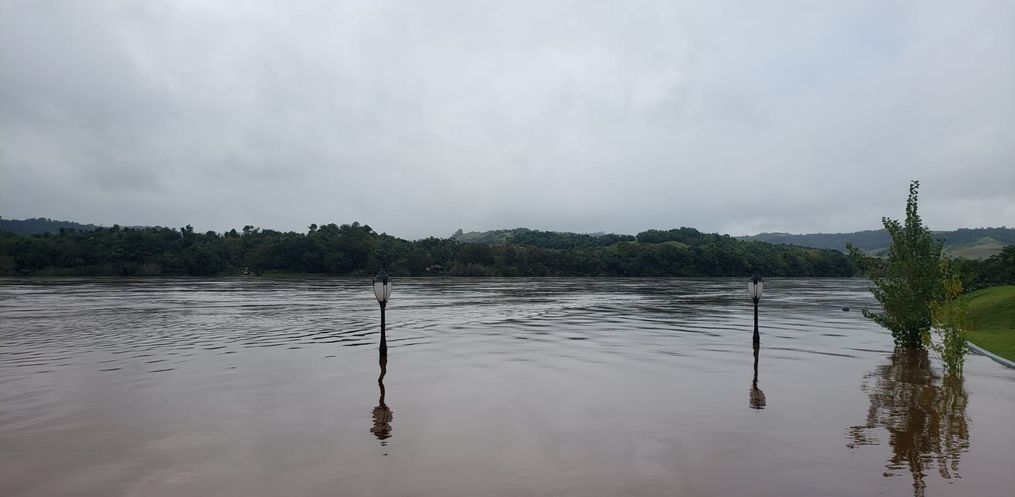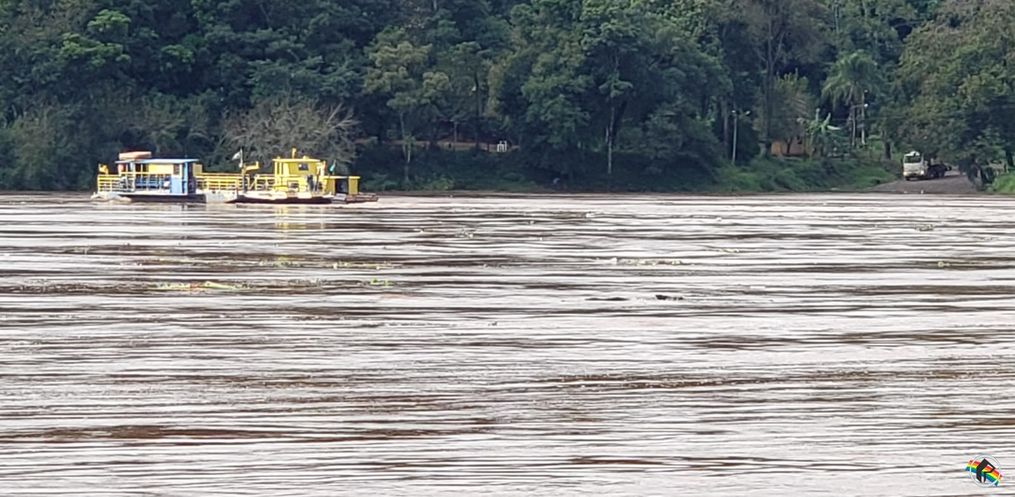 A travessia do Rio Uruguai entre os municípios de Mondaí/SC e Vicente Dutra/RS foi suspensa às 13h30 desta quarta-feira, 04. De acordo com informações do sócio proprietário da empresa “Navegação Porto Feliz”, Guilherme Pisetta, a travessia sempre é interrompida por questões de segurança quando o nível do Rio atinge os sete metros acima do normal, em razão da forte correnteza e da descida de um grande número de galhos e pedaços de madeira.