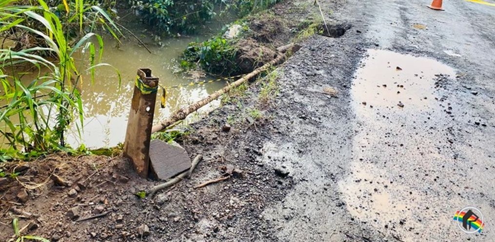 Conforme as informações obtidas pela reportagem da Peperi no local, parte da cabeceira da ponte desmoronou.