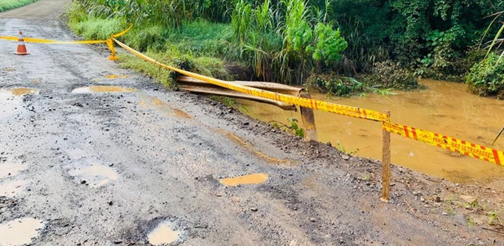 A ponte de Linha Sede Capela segue fechada para passagem de carros e caminhões pelo nível do rio. Já a ponte de Linha Dourado e a ponte próxima ao colégio de Sede Capela já estão liberadas.