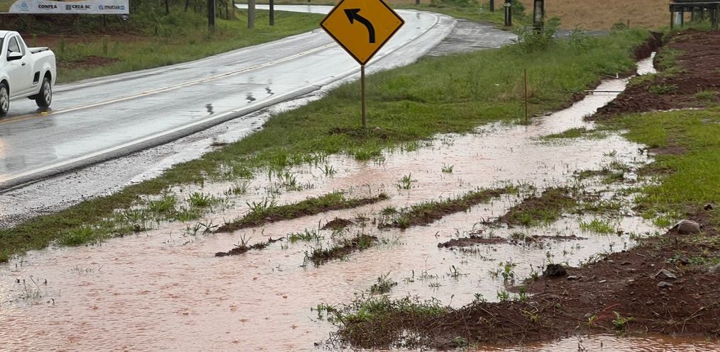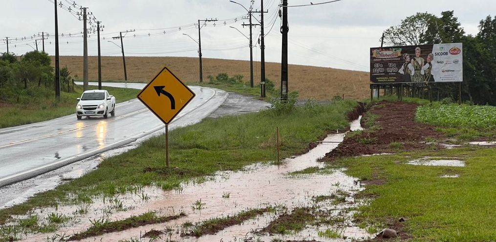 As chuvas desta semana provocaram um alagamento no trecho da SC-163 entre o trevo do bairro Santa Rita e o aeroporto Helio Wassun em São Miguel do Oeste. Usuários da rodovia entraram em contato com a Peperi para relatar o problema. De acordo com eles, em dias de chuva mais intensa, a água escorre pelas laterais da via e acaba se acumulando na rodovia. A situação, de acordo com os motoristas, gera risco de acidentes.
