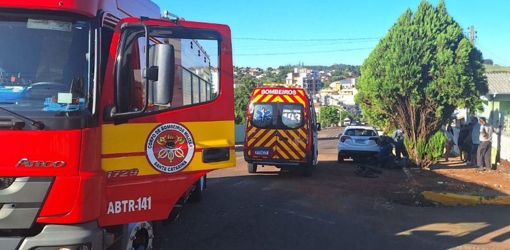 Um ciclista ficou ferido em um acidente envolvendo um carro na manhã desta quarta-feira, 5, em São José do Cedro. O acidente aconteceu por volta das 8h10, no cruzamento entre a Rua Odilo Antônio Link e a Rua Santos Dumont.