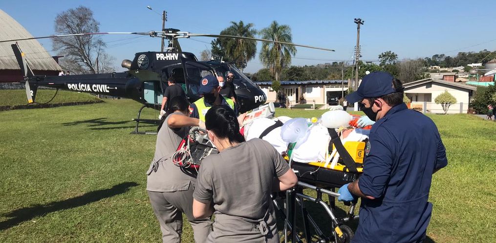 Após ser atendida no hospital de Caibi, a ciclista foi conduzida pelo helicóptero do SAER Sara para Chapecó.