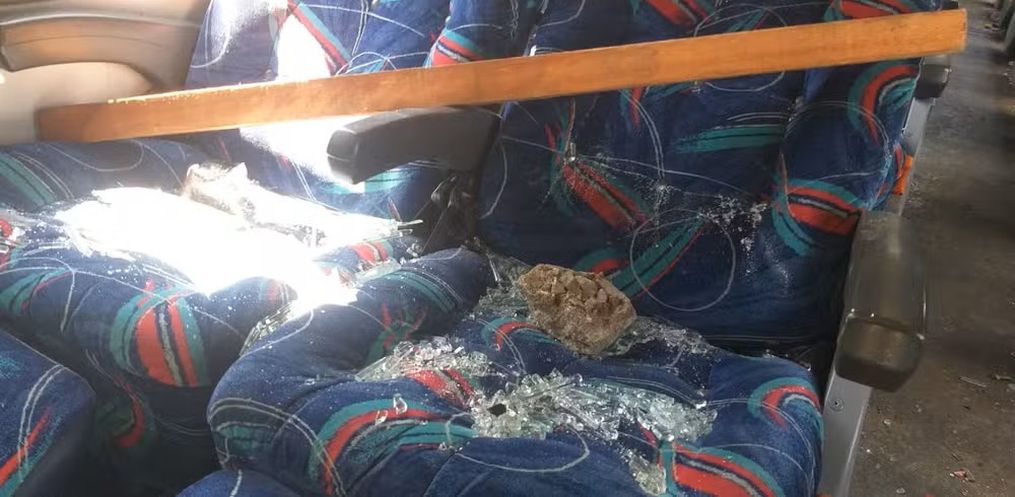 "O ataque resultou no cerco e apedrejamento do veículo, com uso de paus e foguetes, deixando boa parte das janelas do ônibus totalmente destruídas", informou a PRF.