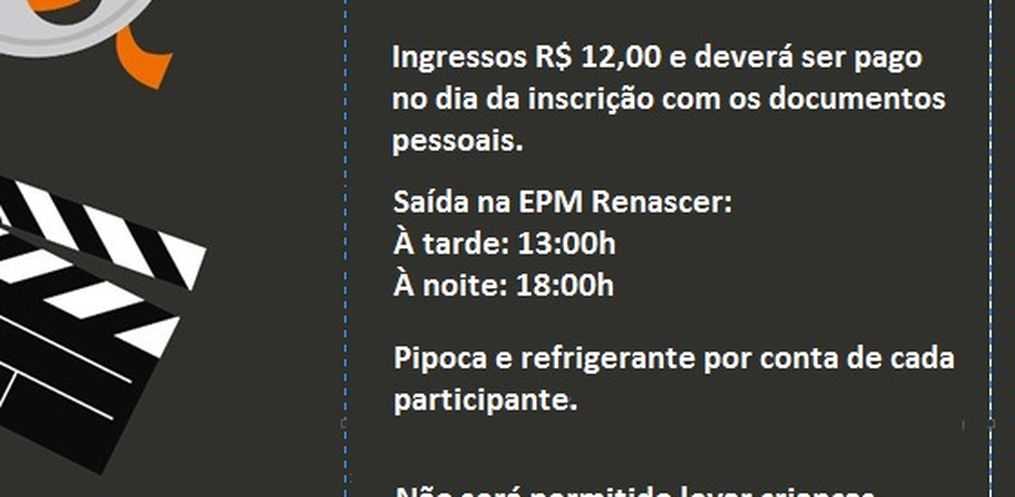 O valor R$ 12 gasto por cada mulher com o ingresso. A pipoca e refrigerante também serão por conta de cada participante. Nos próximos dias também vai ocorrer uma oficina sobre alimentação saudável e uma palestra.