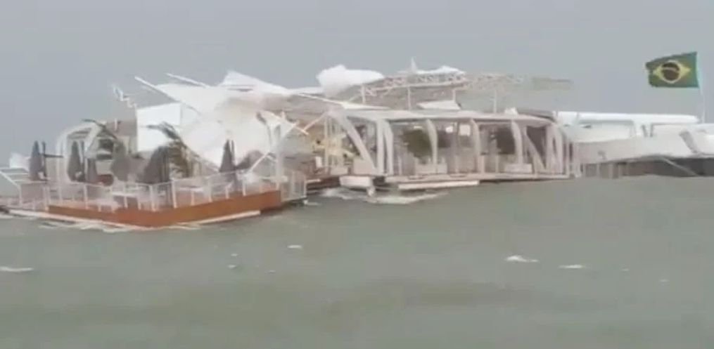 Na quarta, a plataforma estava atracada junto ao píer dos pescadores, na foz do Rio Camboriú. Com a força das rajadas de vento acima de 100 km/h, as amarras se soltaram e, à deriva, a estrutura se desmontou e naufragou. Partes do clube foram parar em praias próximas.