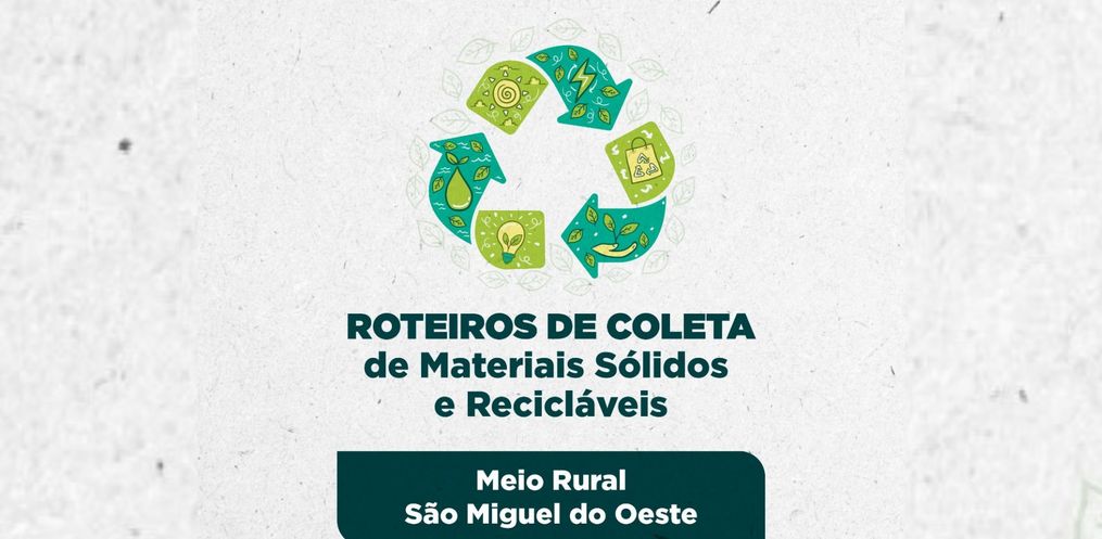 A Prefeitura de São Miguel do Oeste, por meio das Secretarias Municipais de Agricultura, Pecuária e Piscicultura, de Obras e de Saúde, em parceria com a ACOMAR (Associação de Coletores de Materiais Recicláveis), realizará a Coleta de Materiais Sólidos e Recicláveis nas comunidades do interior do município entre os dias 04 e 08 de agosto.