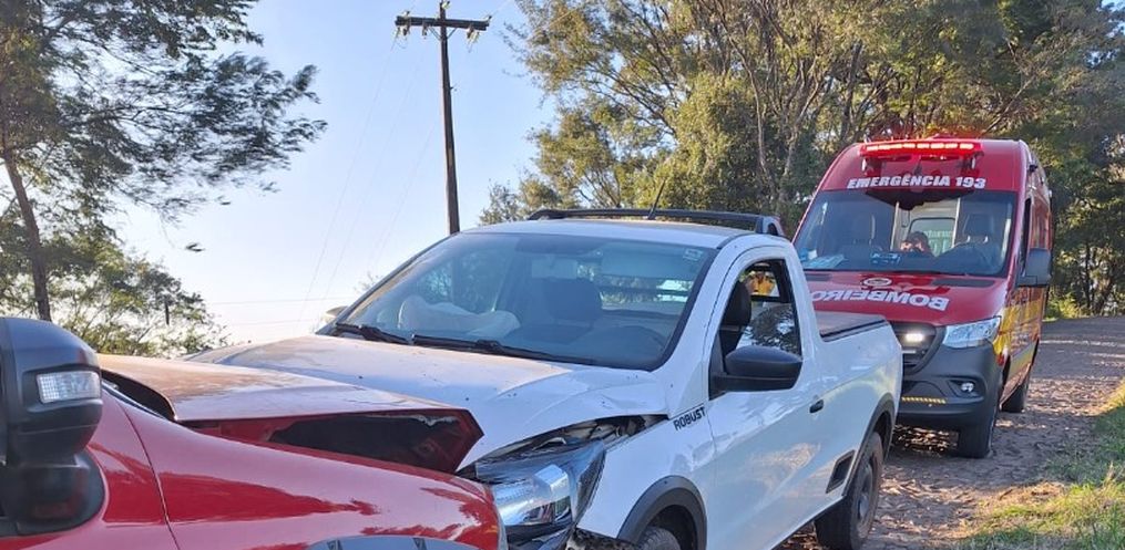 Na manhã desta quinta-feira, 13, por volta das 08h30, os Bombeiros foram acionados para atender um acidente no interior, na estrada de São Vendelino, envolvendo dois veículos, sendo uma Saveiro e uma Strada, ambos com placas Mercosul.