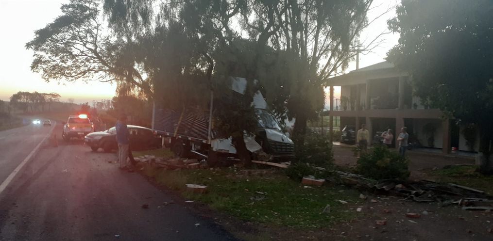 Com o impacto, ambos os veículos pararam fora da pista e o Renault/Master colidiu contra algumas árvores no pátio de uma residência. A reportagem da Peperi apurou no local que apenas a passageira do carro teve ferimentos leves no joelho e foi atendida pelo Corpo de Bombeiros.