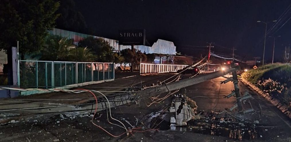 As equipes do Corpo de Bombeiros foram acionadas para atender a colisão entre quatro veículos, sendo que ao chegarem no local verificaram se tratar de uma colisão em poste seguido de mais duas colisões.