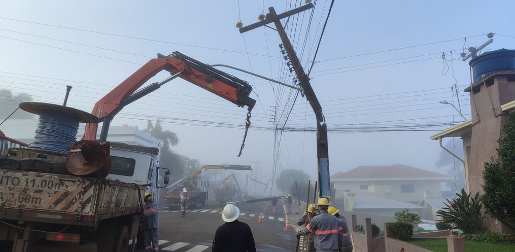 O acidente provocou a queda no fornecimento de energia elétrica em parte da cidade. A equipe da Celesc foi acionada para realizar a troca dos postes de energia elétrica.
