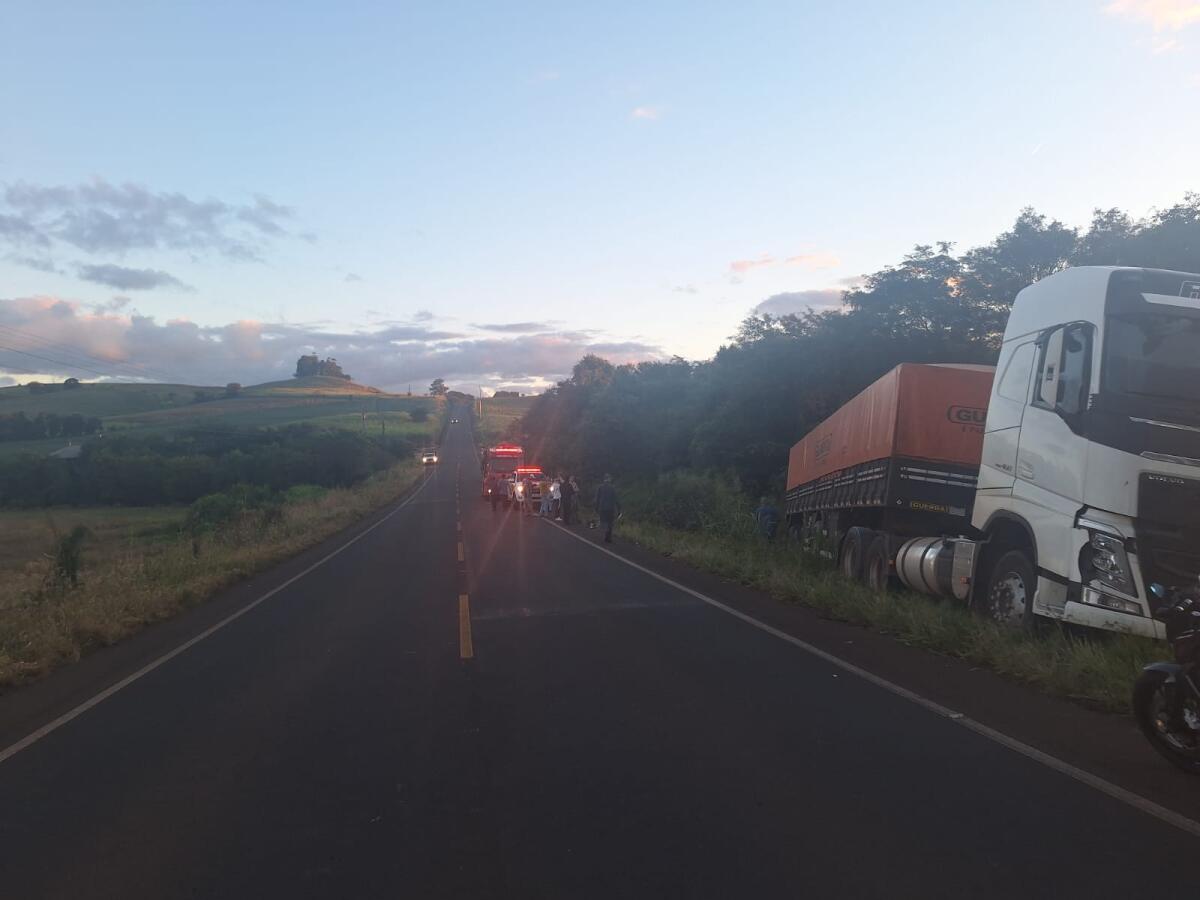 De acordo com a Polícia Militar Rodoviária (PMRv), a colisão foi do tipo abalroamento longitudinal quando os veículos seguem no mesmo sentido, envolvendo um caminhão Volvo/FH 460, conduzido por um homem de 51 anos, e uma motocicleta Honda/CG 125, com placas de São Miguel do Oeste.