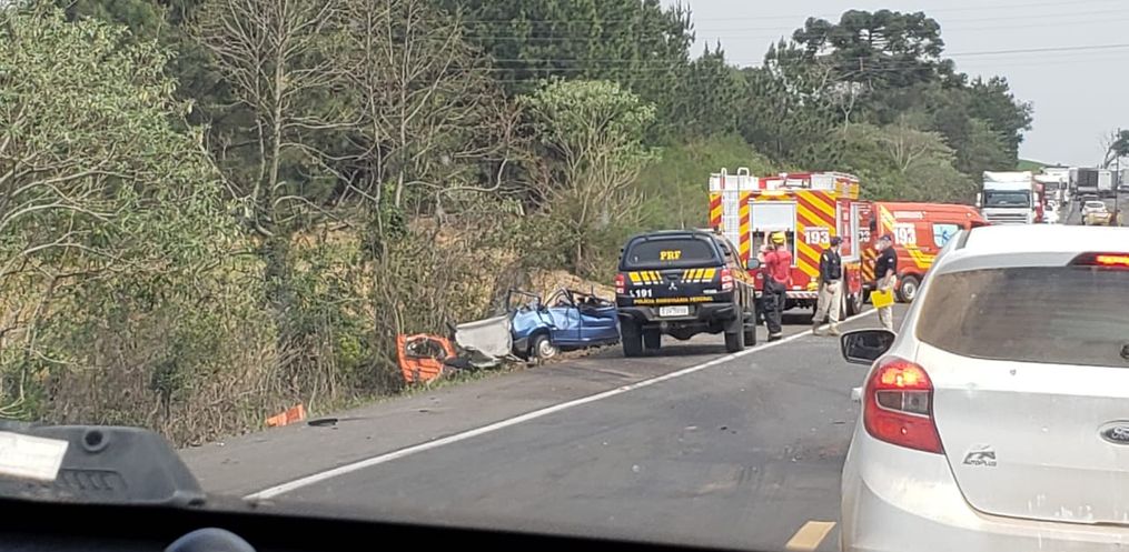 Um grave acidente de trânsito entre uma carreta e um carro deixou uma pessoa morta na BR-282, entre Ponte Serrada e Passos Maia.
