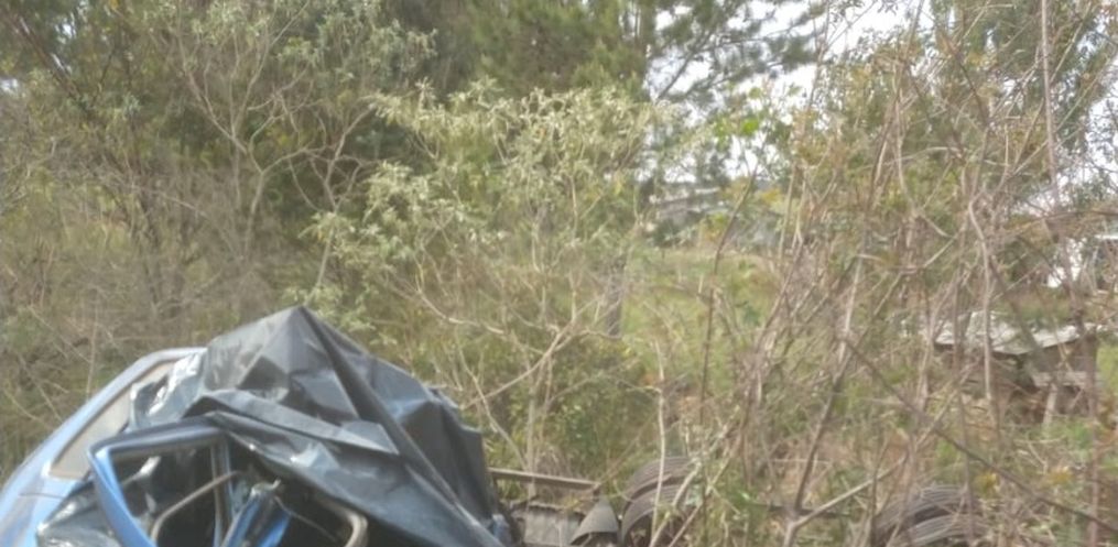 Devido a força do impacto, o carro ficou completamente destruído e a carreta tombou às margens da rodovia.