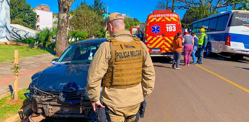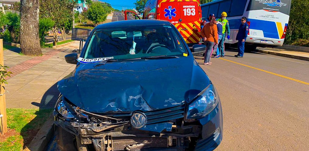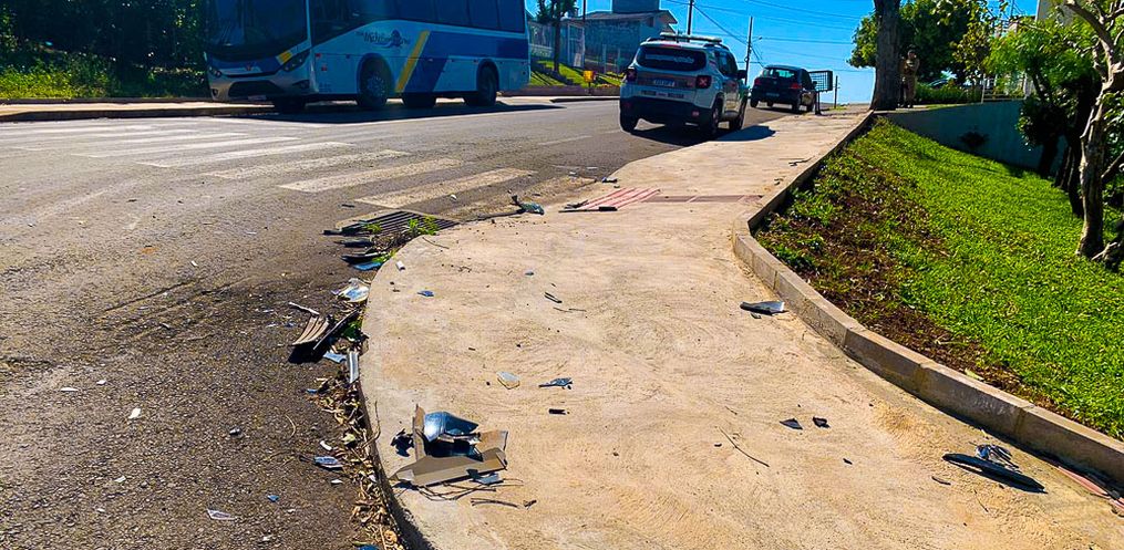 Um motociclista ficou ferido ao ser atingido por um carro no cruzamento das ruas Marcilio Dias com Firmino Dalbosco, no bairro Jardim Peperi, em São Miguel do Oeste, na tarde desta terça-feira, 30.