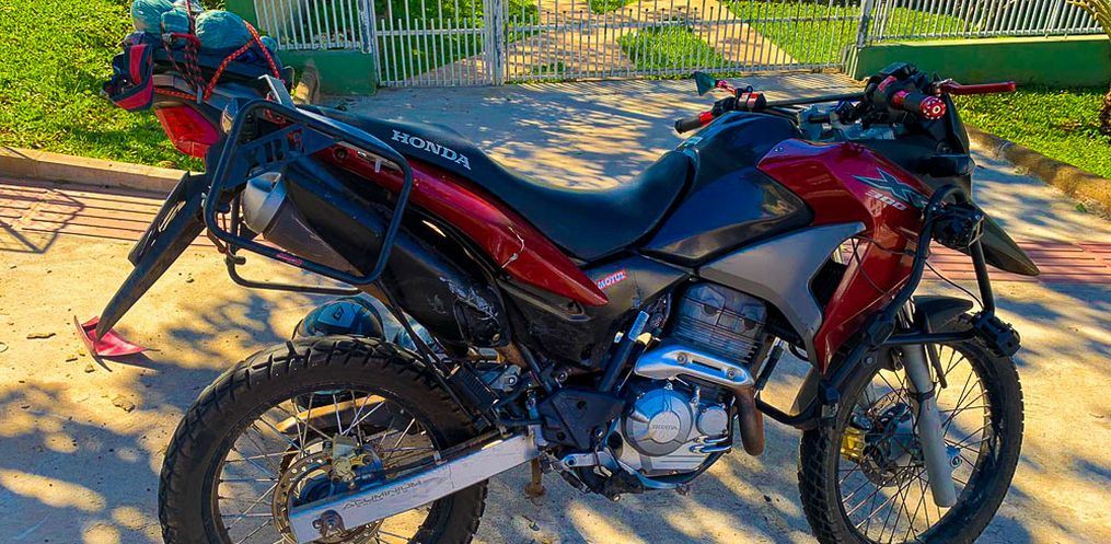 Com a batida o motociclista e a moto foram arremessados.