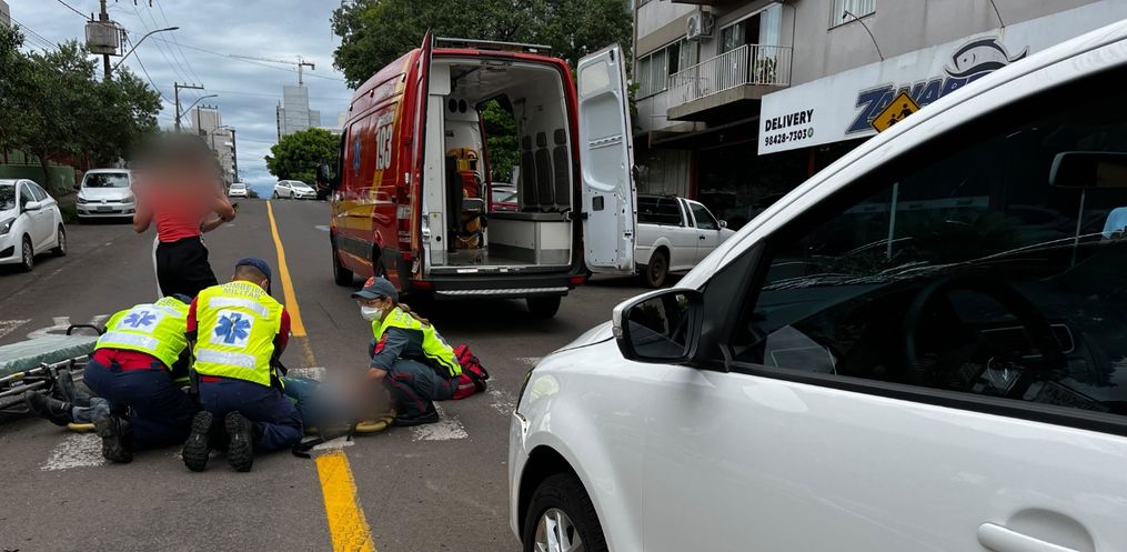 Uma colisão entre um carro e uma moto deixou um homem ferido por volta das 12h15 dessa sexta-feira, 13, na esquina da Rua Marcílio Dias com a La Salle, no centro de São Miguel do Oeste.