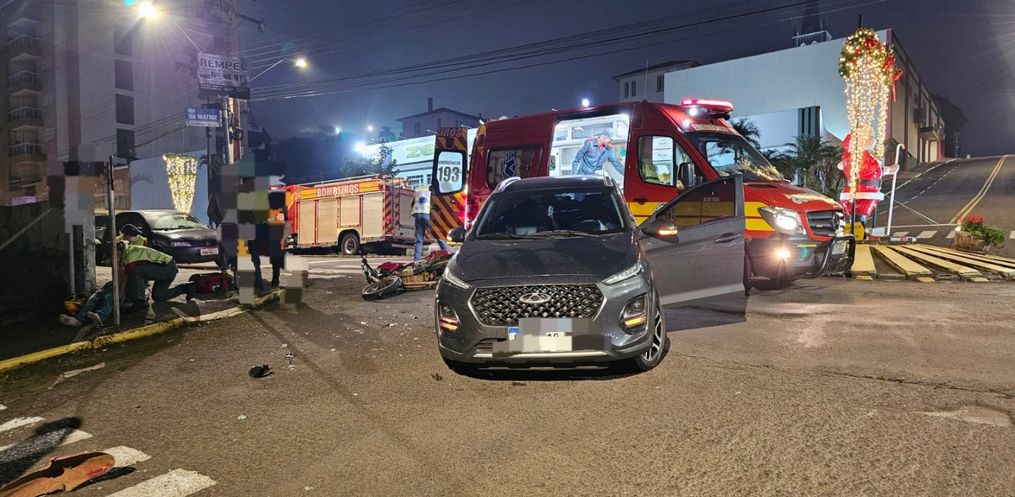 O condutor da moto, de 25 anos, apresentava suspeita de fratura no braço esquerdo. Ele foi encaminhado ao Hospital Sagrada Família. Já o motorista do carro, não sofreu ferimentos. A Polícia Militar esteve no local do acidente.