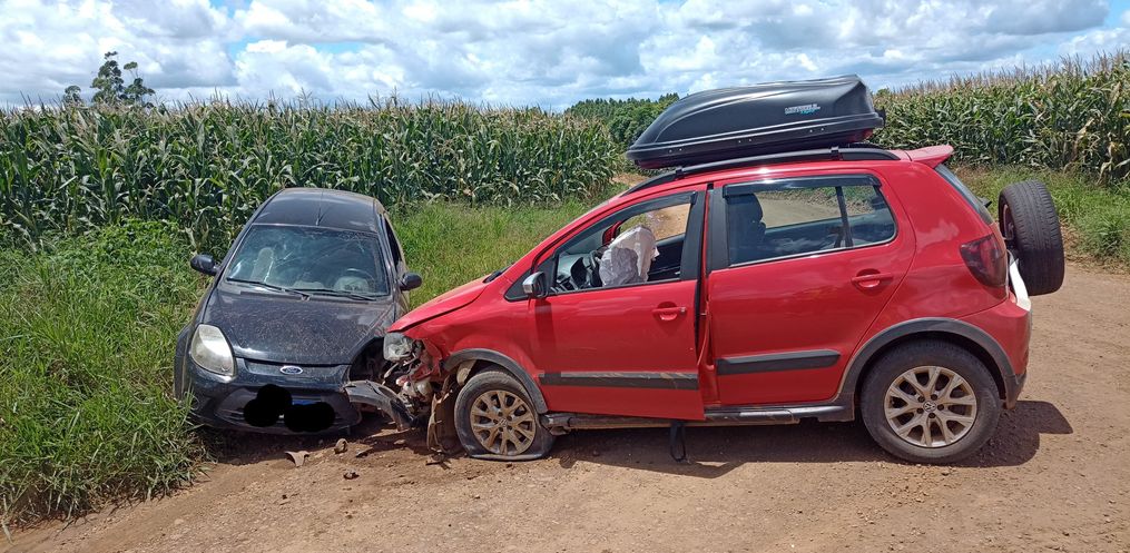 Um acidente de trânsito foi registrado na manhã desta segunda-feira, 16, por volta das 11h40, na Linha Capoeirinha, interior de Mondaí. A colisão envolveu dois veículos, um Ford/Ka e um Volkswagen/CrossFox.