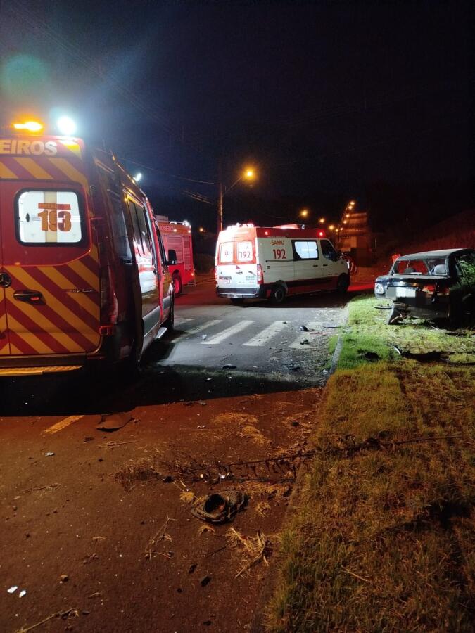 De acordo com o Corpo de Bombeiros, a colisão envolveu dois veículos de passeio, um GM Corsa e um Kia Sorento.