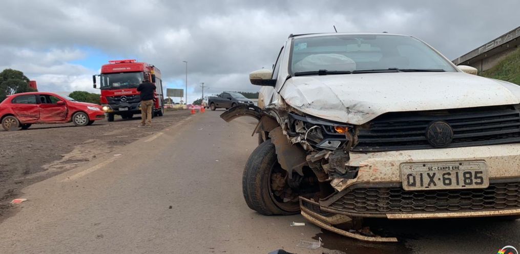Uma colisão lateral entre dois veículos mobilizou os bombeiros de São José do Cedro no início da tarde desta terça-feira, 07, por volta das 13h.