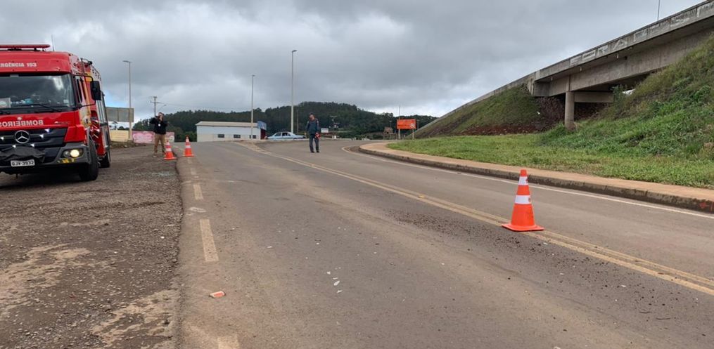O fato foi registrado bem próximo a sede dos bombeiros no sentido a Guarujá do Sul, na via periférica, da BR-163.