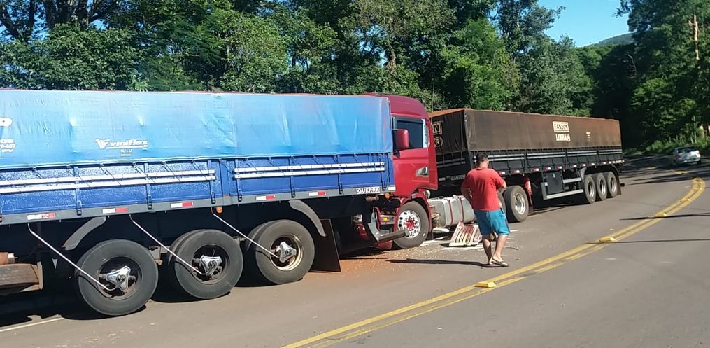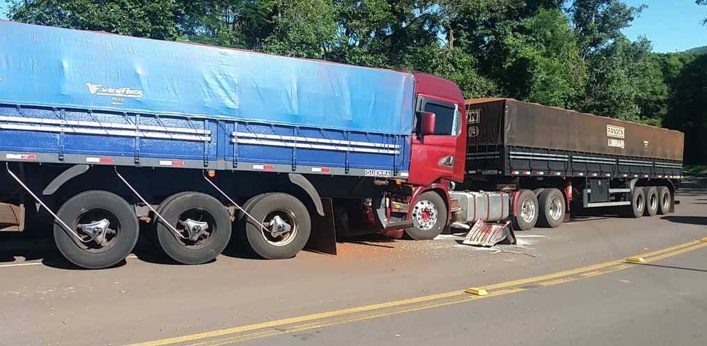 Uma colisão traseira entre duas carretas emplacadas no Paraguai deixou o trânsito interditado na manhã desta terça-feira, 30, na SC 161, em Romelândia. O local do acidente fica cerca de 100 metros do trecho conhecido como curva da morte.
