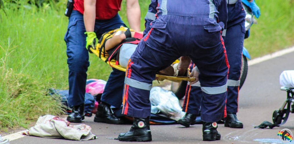 Um acidente entre um caminhão e uma moto deixou duas pessoas gravemente feridas no início da tarde desta quarta-feira, 14, entre São Miguel do Oeste e Bandeirante.