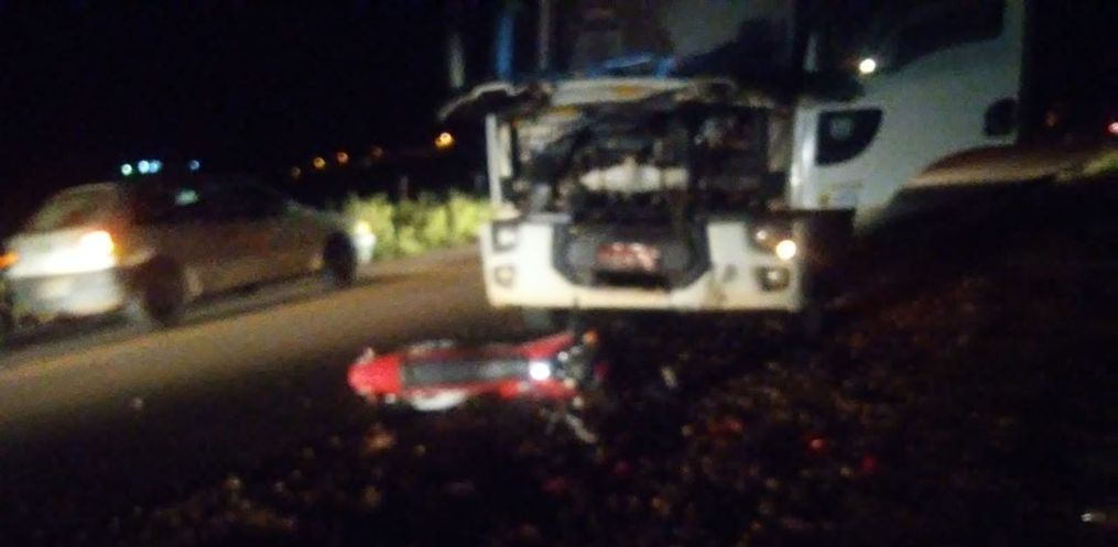 Ao chegar ao local confirmou se tratar de uma colisão envolvendo uma motocicleta CG, placa de Princesa e um caminhão leiteiro de Palma Sola.