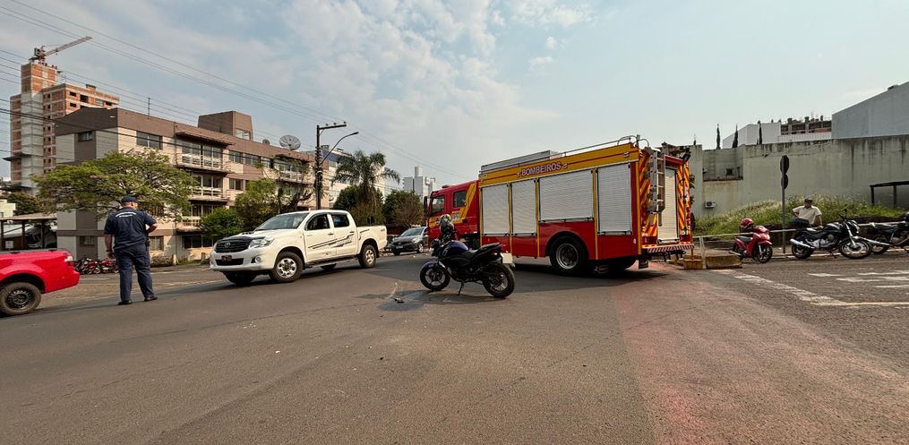 Um motociclista ficou ferido em um acidente de trânsito na manhã desta quarta-feira, 4, centro de São Miguel do Oeste. O fato ocorreu por volta das 10h, no cruzamento das ruas Marcílio Dias e Sete de Setembro.