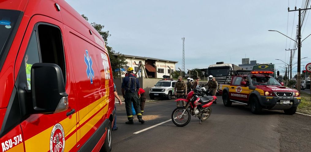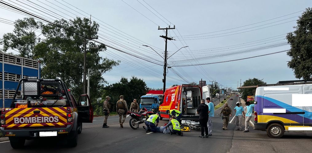 O motociclista apresentava ferimentos na cabeça, foi socorrido pelo Corpo de Bombeiros e encaminhado ao Hospital Regional Terezinha Gaio Basso.